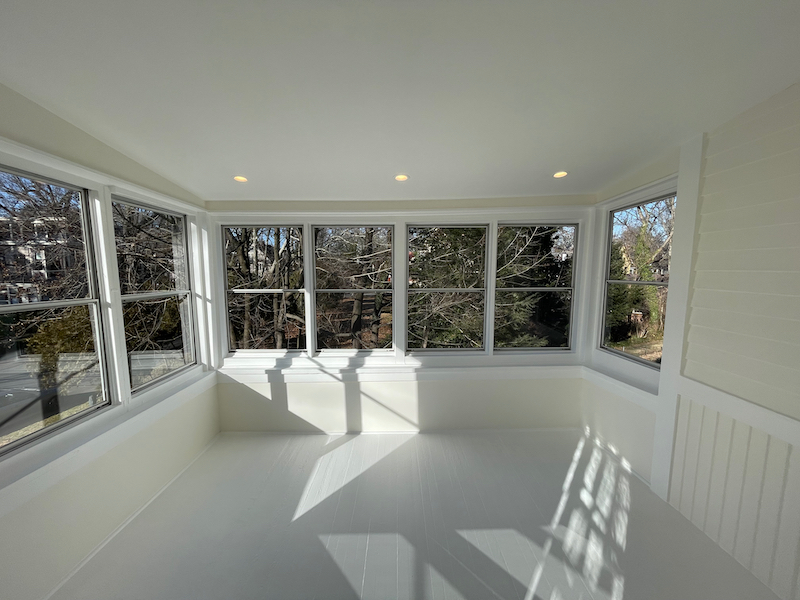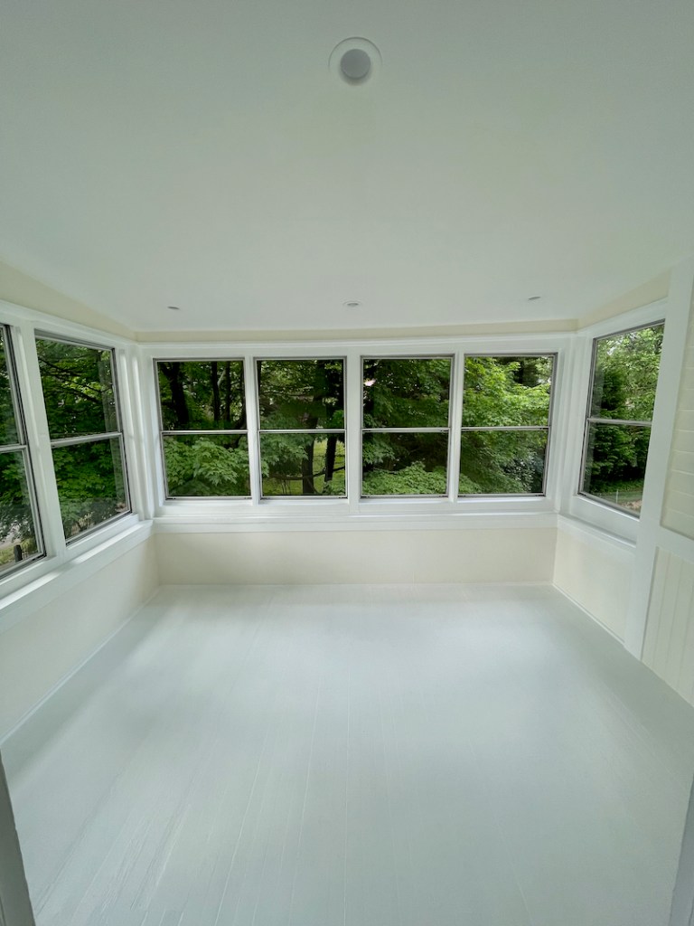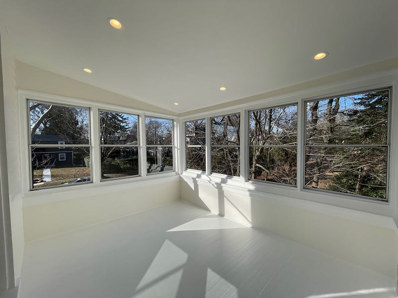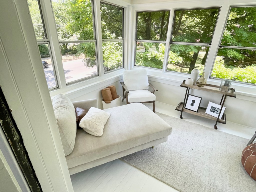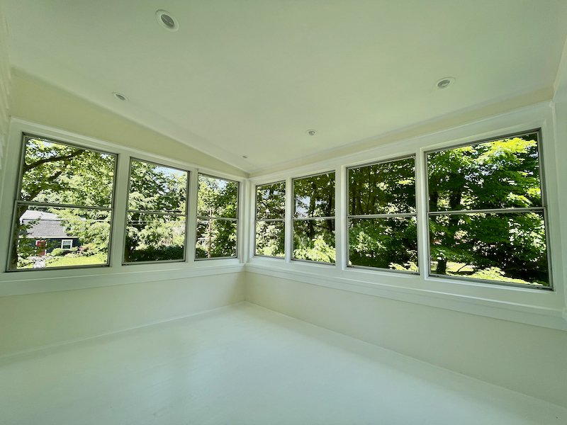 Enclosed sun porch (all windows have screens): 12′ x 10′