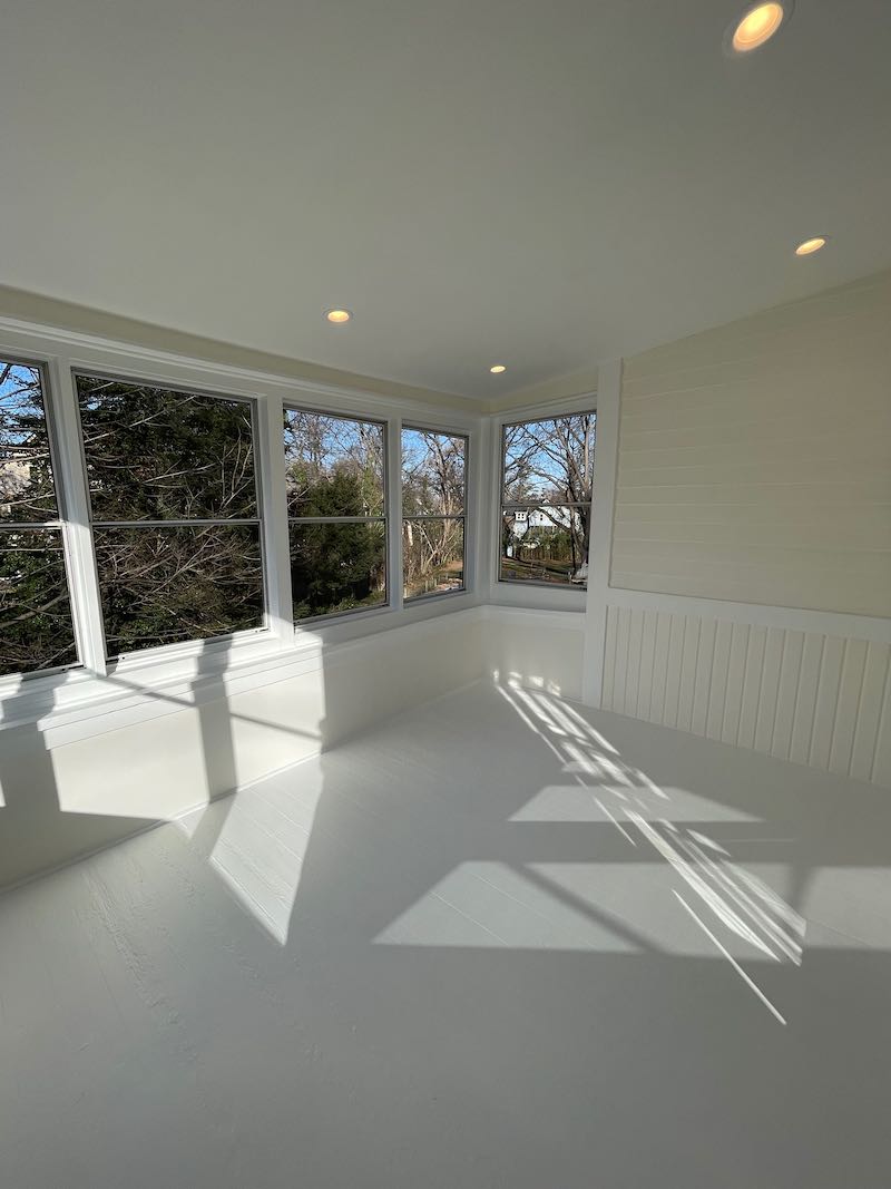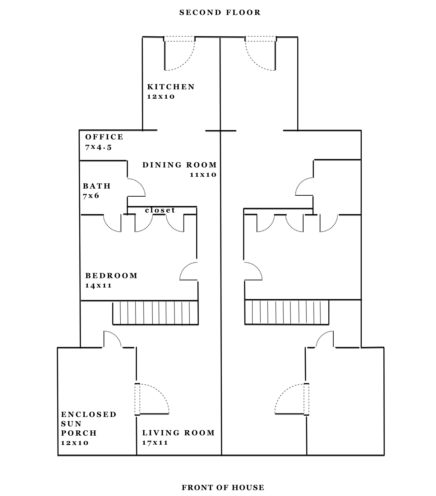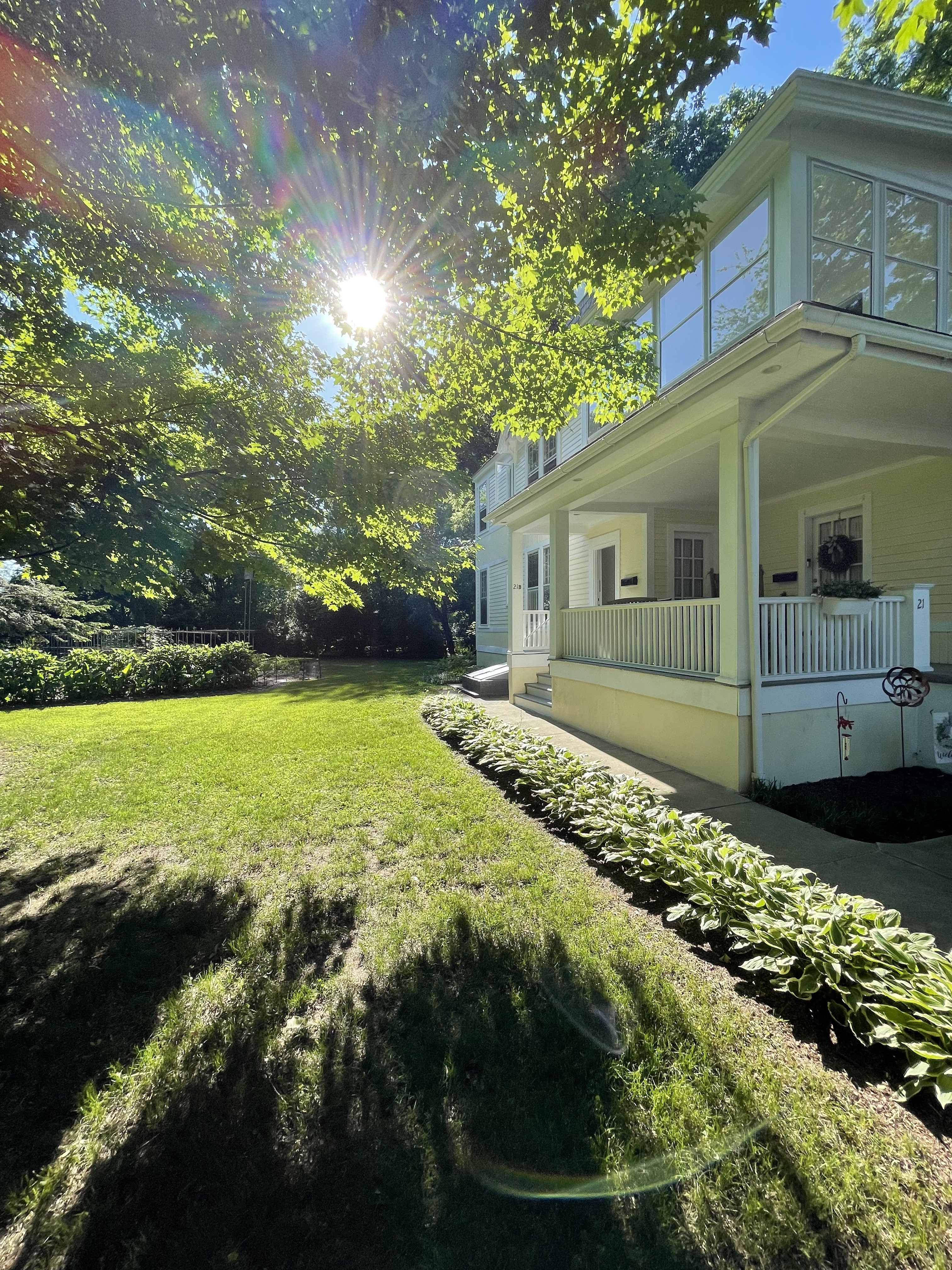 Enclosed sun porch (all windows have screens): 12′ x 10′