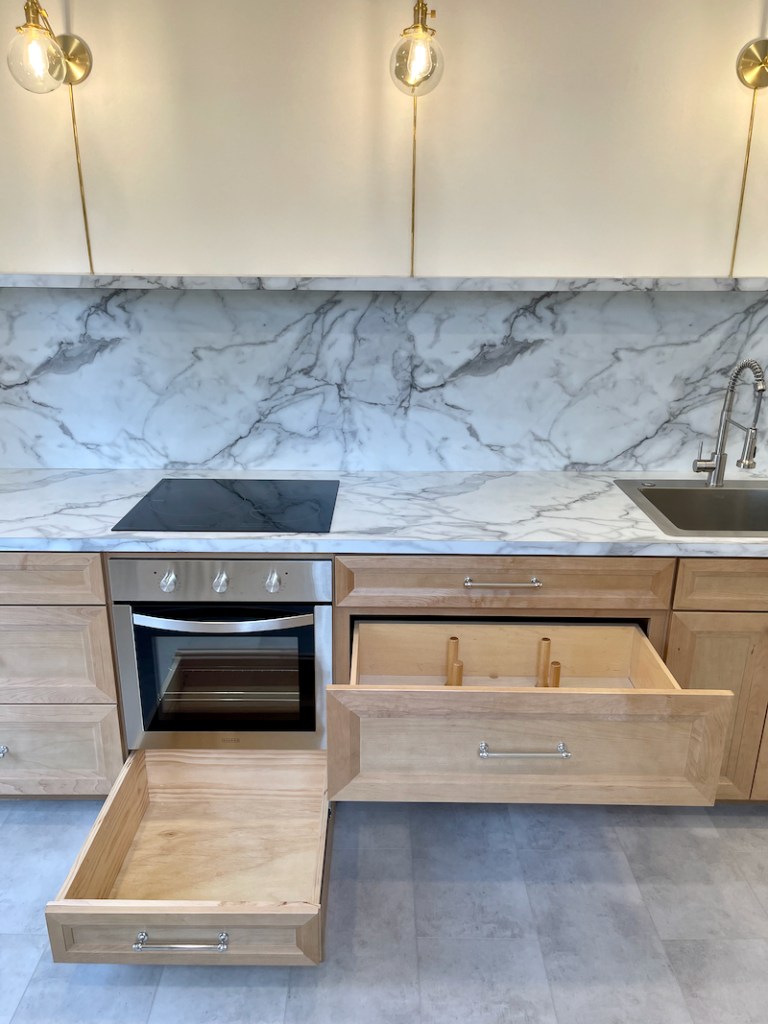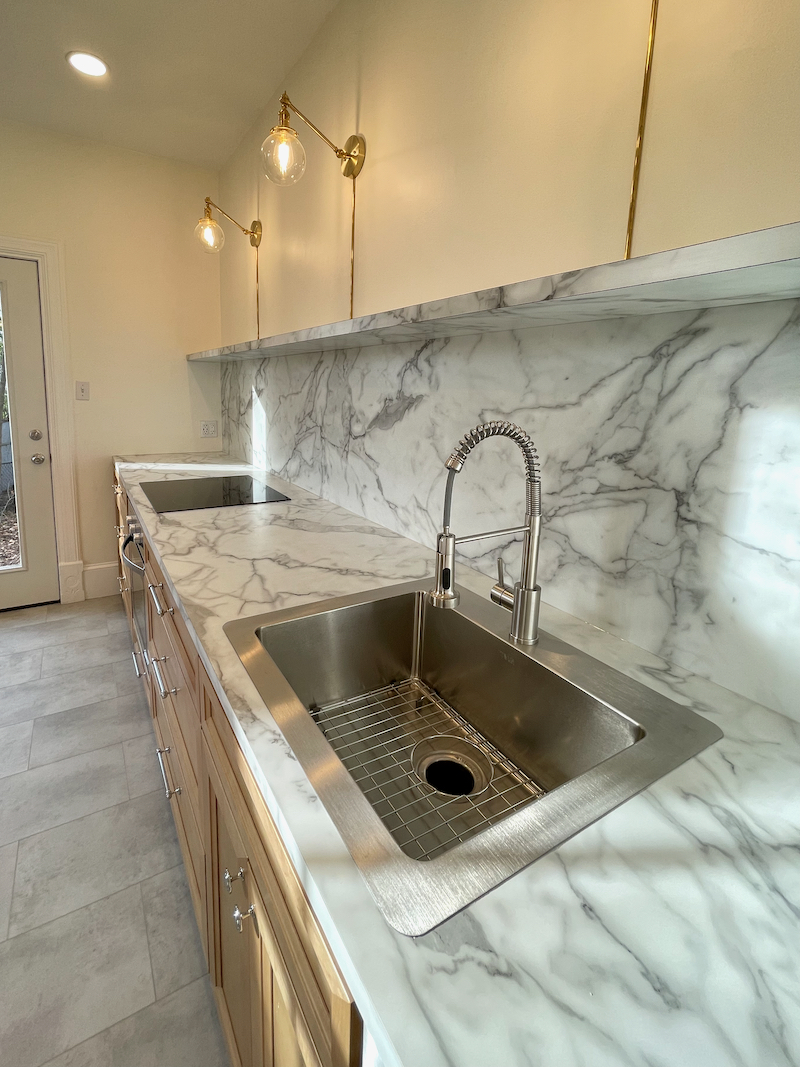 Kitchen: induction cooktop, dishwasher, garbage disposal, icemaker.